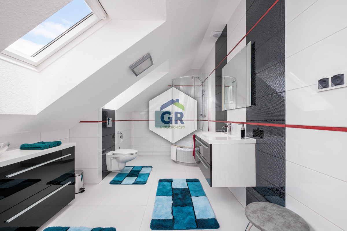 Dom wolnostojący parterowy z poddaszem użytkowym posadowiony na działce o powierzchni 1232 m2. Nieruchomość jest gotowa do zamieszkania, wykończona w podwyższonym standardzie w nowoczesnym stylu.