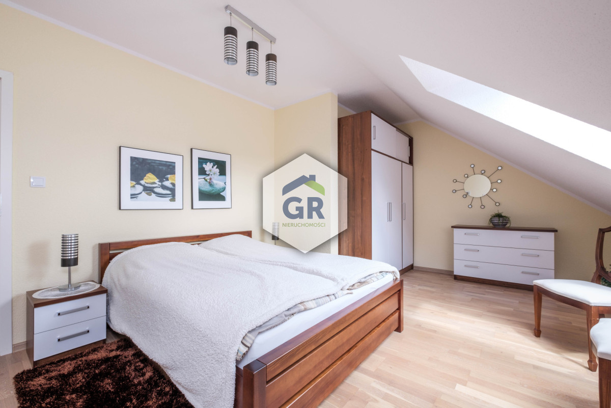 Dom wolnostojący parterowy z poddaszem użytkowym posadowiony na działce o powierzchni 1232 m2. Nieruchomość jest gotowa do zamieszkania, wykończona w podwyższonym standardzie w nowoczesnym stylu.