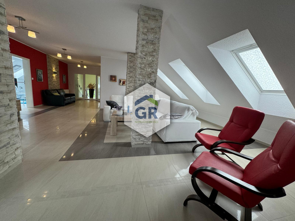 Dom wolnostojący, parterowy z poddaszem użytkowym, o powierzchni całkowitej 348,02 m² oraz powierzchni użytkowej 283,72 m².