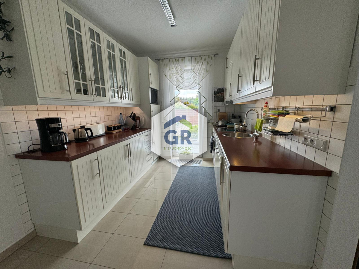 Na sprzedaż komfortowy dom wolnostojący położony na dużej, zagospodarowanej działce o powierzchni 1232 m², w spokojnej i kameralnej części Kiełpina przy ul. Długiej.Lokalizacja łączy ciszę i bliskość natury z wygodnym dostępem do infrastruktury. W pobliżu znajdują się lasy i jeziora, a do centrum Kartuz dojedziemy w około 9 minut (5,9 km). Jednocześnie nieruchomość zapewnia sprawny dojazd do Trójmiasta.