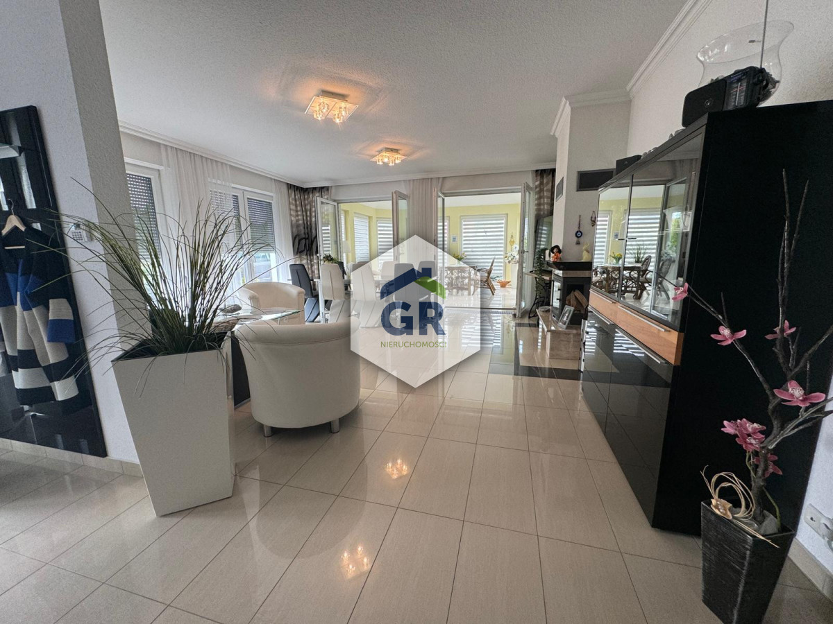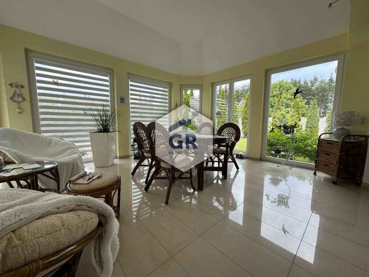 Dużym atutem domu jest ogród zimowy o powierzchni 22,09 m², powstały z zabudowy tarasu. Dzięki dużym przeszkleniom pomieszczenie jest bardzo dobrze doświetlone i stanowi idealną przestrzeń wypoczynkową.