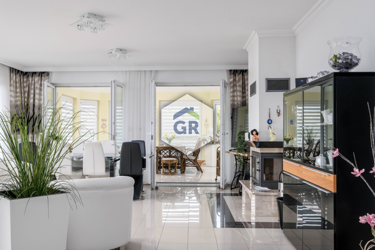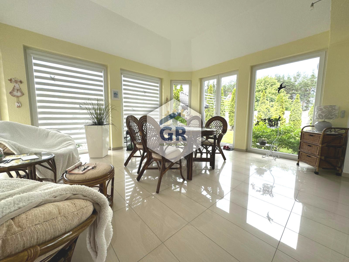 Dużym atutem domu jest ogród zimowy o powierzchni 22,09 m², powstały z zabudowy tarasu. Dzięki dużym przeszkleniom pomieszczenie jest bardzo dobrze doświetlone i stanowi idealną przestrzeń wypoczynkową.