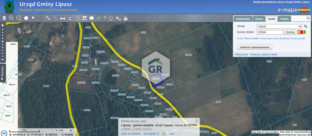 LOKALIZACJA:DZIAŁKA znajduje się w miejscowości BOROWIEC, która sąsiaduje bezpośrednio z Lipuszem.