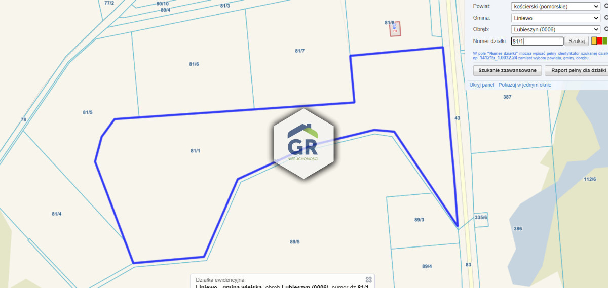 Dane geodezyjne: 81/1; obręb 06; Lubieszyn