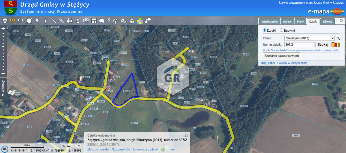 LOKALIZACJA:DZIAŁKI znajdują się w miejscowości Sikorzyno Stara Sikorska Huta, gmina Stężyca.