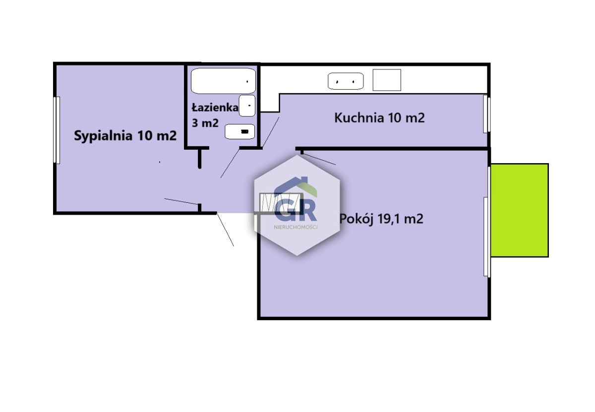 - dwóch pokoi (19,1 i 10 m2),