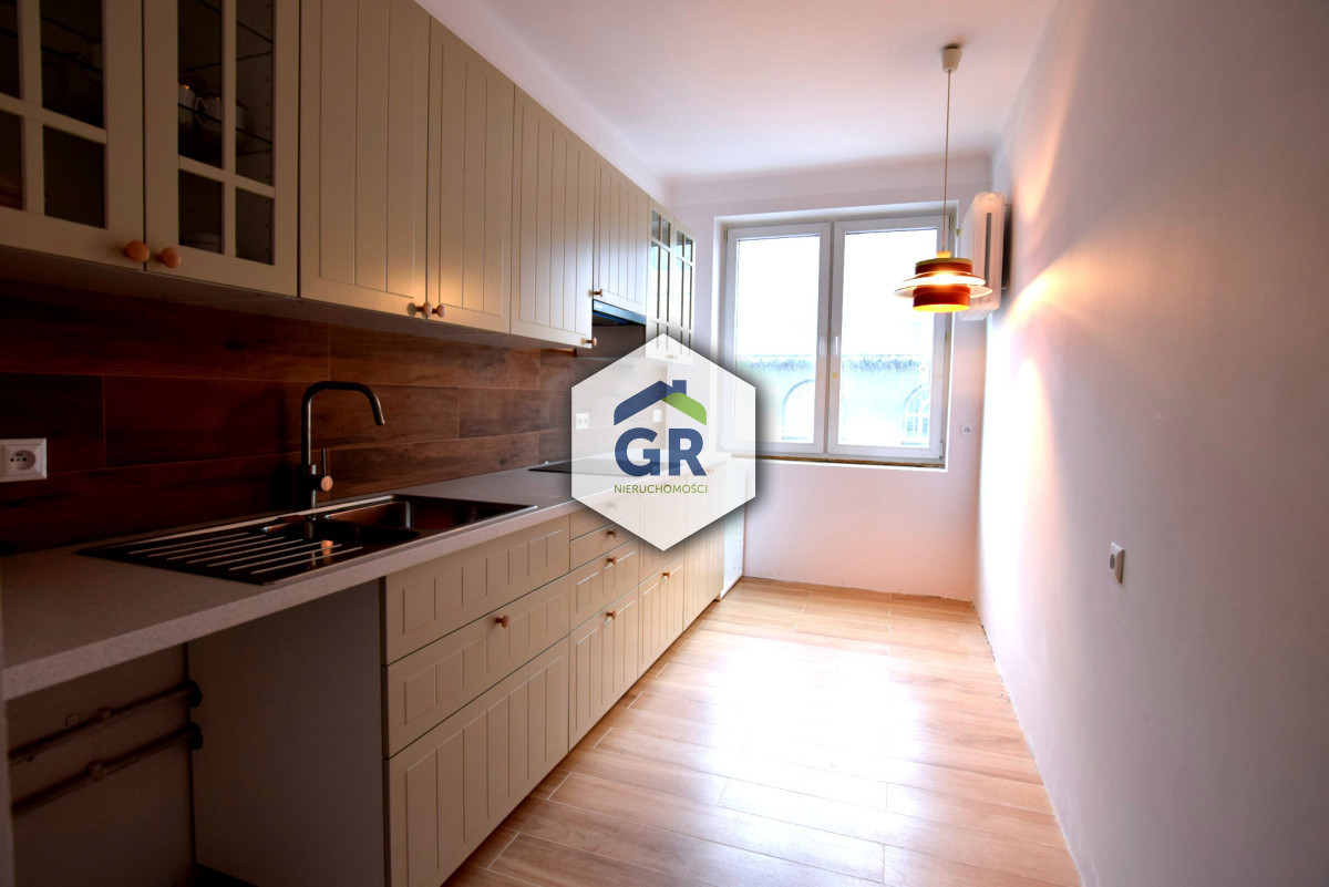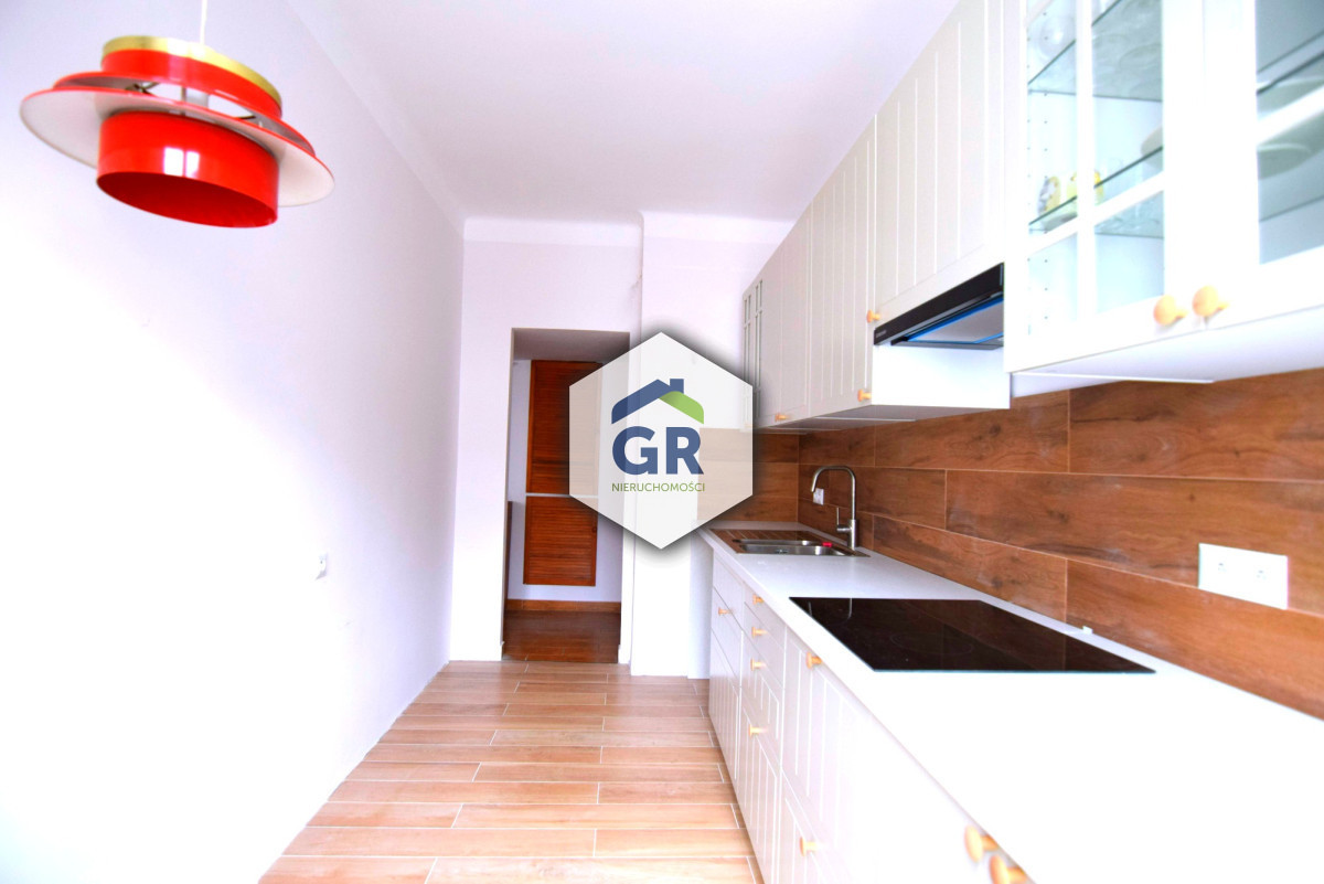 Wysokość mieszkania 2,8 m. Kuchnia nowa, w zabudowie. Resztę mieszkania można odświeżyć, ale mieszkanie nie wymaga koniecznego remontu. Ściany wygładzone, częściowo wymieniona instalacja elektryczna, łazienka remontowana kilkanaście lat temu. Na podłogach w pokojach i przedpokoju oryginalny parkiet. Od strony podwórza zieleń. Ściana pomiędzy kuchnią a pokojem jest ścianą działową, istnieje więc możliwość jej wyburzenia.