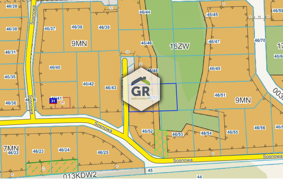 Działka znajduje się na terenie objętym planem zagospodarowania przestrzennego. Ponad połowa działki (660 m2) znajduje się na terenie oznaczonym jako 9MN - zabudowa jednorodzinna (powierzchnia zabudowy do 30%, 2 kondygnacje naziemne, w tym poddasze, wysokość zabudowy do 9m, dach dwuspadzisty. Pozostała część działki to tereny zielone 16ZW, na którym istnieje możliwość budowy altany o pow. do 20 m2 wysokości do 4 m.
